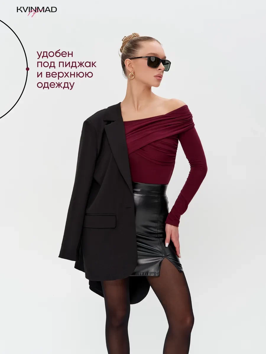 Представляем вам стильный и комфортный лонгслив от KVINMAD, который станет настоящим украшением вашего гардероба. Этот облегающий лонгслив с открытыми плечами и изысканной драпировкой подчеркнёт вашу фигуру и добавит нотку элегантности любому образу. Сделайте свой нарядный образ неповторимым с помощью оригинальных складок и переплетения, которые придают модели особый шарм. Лонг изготовлен из мягкой и приятной к телу ткани — вискозы с добавлением лайкры, что обеспечивает комфорт и свободу движений на протяжении всего дня. Он идеально подойдёт как для вечерних выходов, так и для повседневной носки и позволит вам создать множество стильных образов, от элегантных до casual. Благодаря своей универсальности, он станет незаменимой вещью в гардеробе любой современной женщины. Мы уверены, что вы оцените высокое качество пошива и внимание к деталям, ведь этот лонгслив создан с любовью на собственном производстве в России. Открытые плечи придают модели особый шарм и кокетливость, а драпировка подчеркнёт вашу женственность. Лонгслив со спущенными плечами — это идеальное сочетание комфорта, стиля и качества, которое выгодно подчеркнёт вашу индивидуальность. Он станет прекрасным дополнением к любому гардеробу как и кофта, будь то вечерний наряд или повседневный look. Не упустите возможность приобрести этот стильный и удобный лонг слив, который станет вашим любимым предметом одежды. Мы уверены, что вы будете довольны своим выбором. С любовью, команда KVINMAD