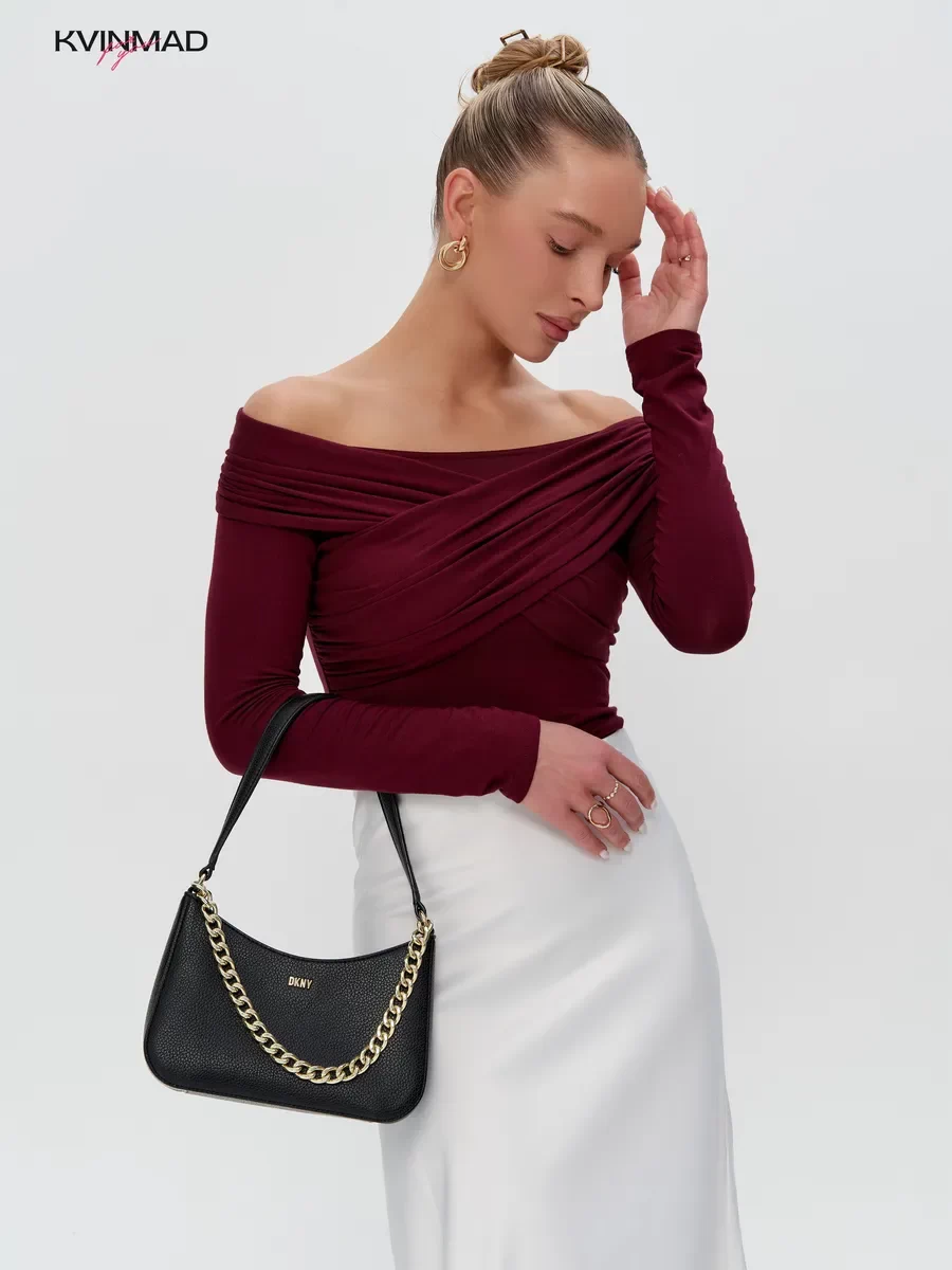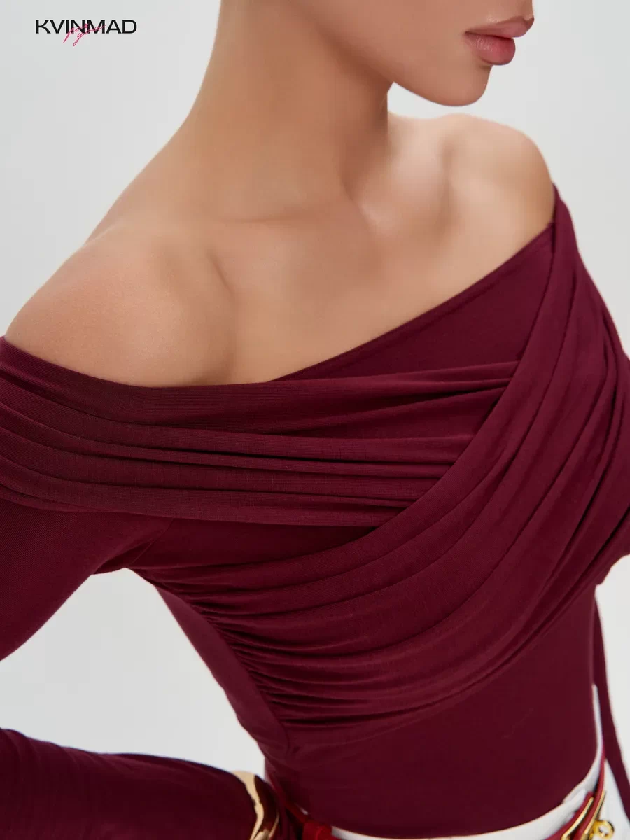 Лонгслив облегающий с открытыми плечами с драпировкой